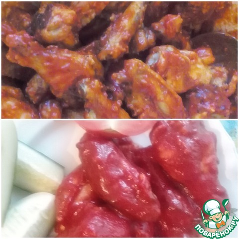 Ах, друзья, какие это вкусные крылышки, ну просто песня! Это прекрасное блюдо для посиделок с друзьями, особенно для мужской компании! Крылышки "Баффало" - это одно из культовых блюд Америки. Они очень популярны в барах, особенно спортивных и пивных. Многие бары специализируются на этом блюде, подают со множеством самых различных соусов. Но есть традиционный соус, который в меню любого бара будет непременно - это соус "Баффало" с острым красным перцем. Подают крылышки в компании с нарезанными соломкой сельдереем и морковью, а также с дипами, самые популярные из которых - "Ранч" и "Блю чиз". Зовите друзей-приятелей, покупайте пиво, готовьте крылышки и наслаждайтесь вкусной едой и приятным общением!