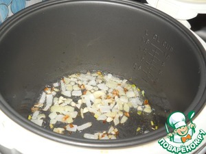 Для начала обжариваем на режиме Жарка лук и чеснок