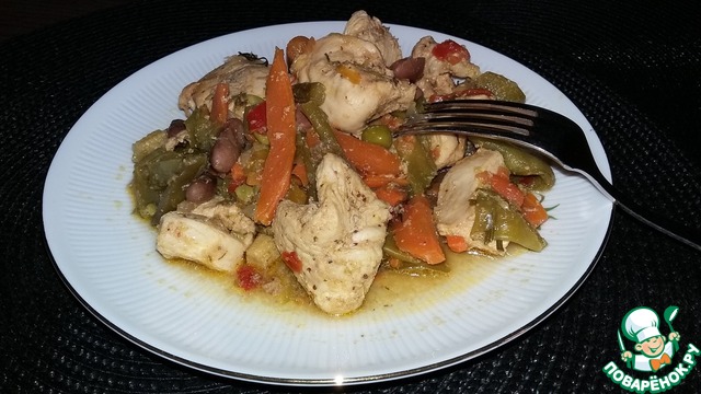 Ингредиенты для «Тушеные куриные грудки с овощами»: