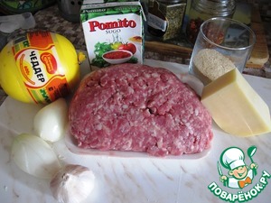 Пармезан и чеддер натрите на терке. Лук и чеснок измельчите в блендере. Если у вас нет готовых протертых томатов, с томатов в собственном соку снимите кожицу и пропустите в блендере.