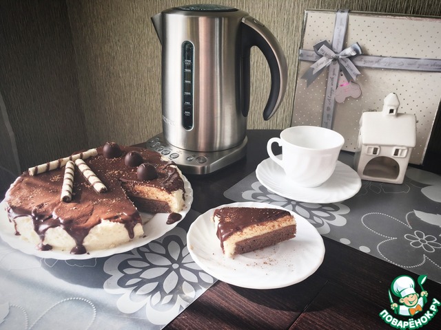 Обалденно вкусный торт!!! Я слишком спешила и не успела вовремя разровнять поверхность суфле, он быстро застывать начал и поэтому получился рельефным , но на вкус это никак не повлияло! Удивительно быстро готовится! Спасибо за рецепт!!!