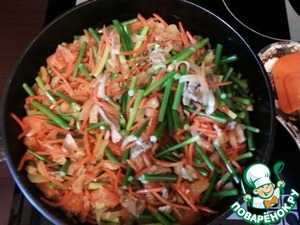 Морковь потерла на "корейской" терке соломкой для красоты. Можно просто порезать тонкими кружочками или натереть на обычной терке, на вкус это никак не влияет.