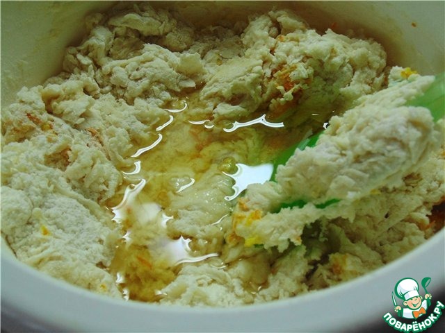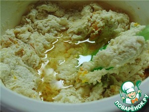 Добавить растительное масло. Хорошенько перемешать, до образования однородного густого теста, близкого к бисквитному.