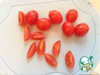Помидоры нарезаем на четвертинки, рыбу на тонкие пластинки |