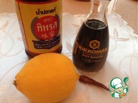 Теперь готовим заправку: смешиваем соевый соус, сок лимона, рыбный соус (у меня тайский), сахар, измельченный перец чили и масло, оставшееся от жарки лука |