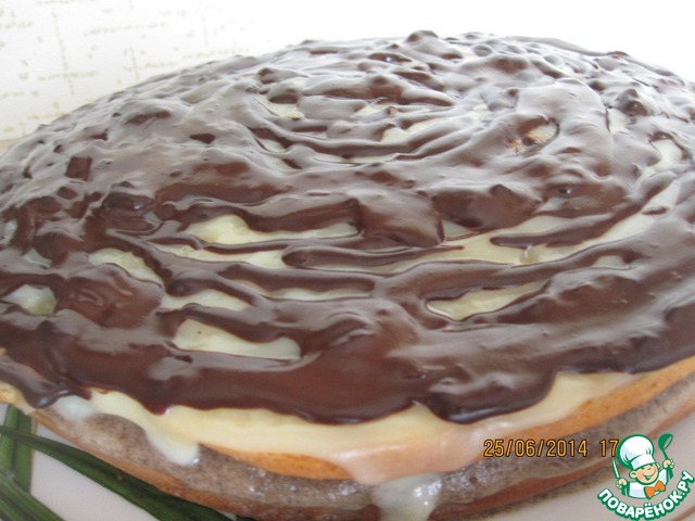 Растапливаем шоколад (можно добавить совсем немного молока) и поливаем торт шоколадом.