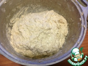 Далее добавляем сначала ячменную, а затем обычную муку и руками вымешиваем. Тесто липнет к рукам, добавляем 50-70 мл растительного масла и еще немного вымешиваем. Муки не добавляем
