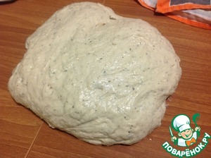 Вытаскиваем тесто из пакета, делим его на две части. Руки смазываем растительным маслом и немного тесто обминаем. Формируем комочек из теста, оставляем на столе на 15 мин