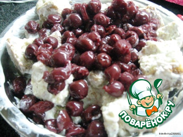 Приготовить из наших продуктов заливку и добавить вишневые косточки (ягодки).