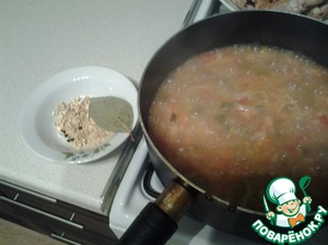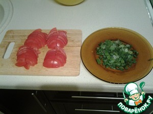 В это время режем помидорчики и сельдерей, у меня он черешковый замороженный.