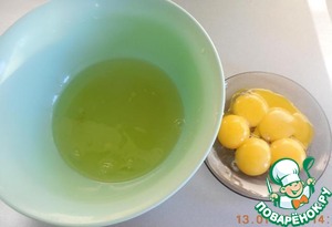 Отделяем белки от желтков, белки прячем пока в холодильник.