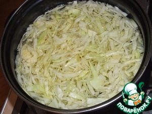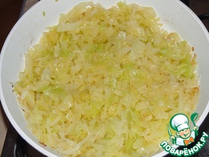 Капусту хорошо отжать и добавить к луку. Обжариваем все вместе пару минут. Добавляем сливочное масло, ждем когда оно растворится, снимаем с огня и перекладываем в миску