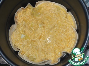 Аккуратно выкладываем капустную начинку и сверху на нее заливку. Сверху я присыпала итальянскими травами