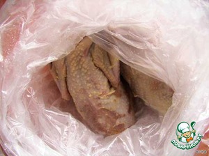• Перепёлок или окорочка положить в целофановый пакетик.