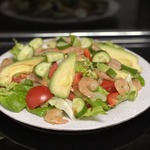 Приготовить четыре тарелки, посыпать на них хаотично подготовленные листья салата, выложить смешанные овощи с креветками и добавить авокадо. Натереть на мелкой терке сверху на каждую тарелку цедру лайма. Разрезать лайм на четвертинки и положить в каждую тарелку. Перед употреблением выжать сок лайма сверху. Приятного аппетита!
