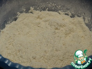 Смешать муку, сахар, соль. Добавить размягченное сливочное масло и вымесить тесто миксером до состояния крошки. Кому не лень, можно перетереть тесто руками))