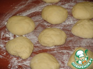 Обмять тесто, разделить его на 12 частей и скатать их в шарики -