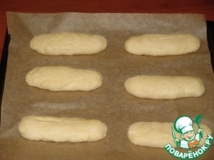 Из шариков сформировать колбаски длиной 12 см. Переложить на противень. Убрать в теплое место на полчаса.