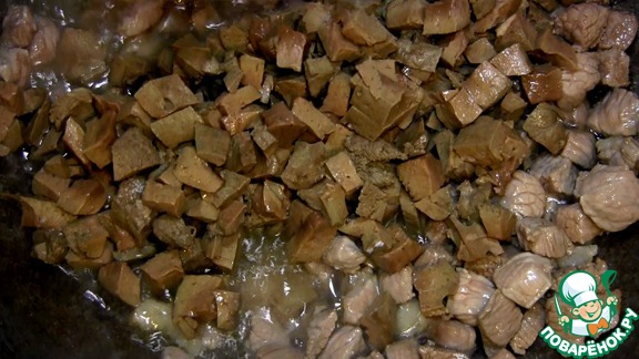 • Затем сало (все жарить на большом огне, при этом постоянно мешать)