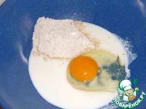 Готовим тесто. Овсяную крупу измельчить в блендере или кофемолке, чтобы получилась грубая мука. В миску залить кефир, добавить яйцо и овсяную муку, соль по вкусу.