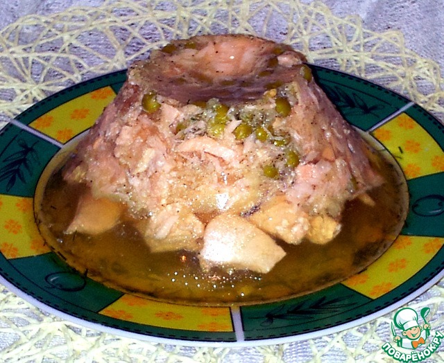 [+5]Вкусное заливное , добавила немного зеленого горошка.