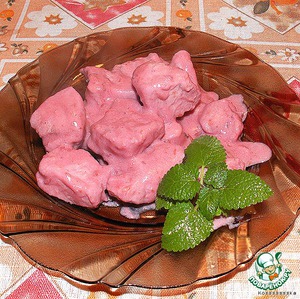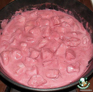 Восхитительно яркая, ароматная и нежная курочка с ярко-розовой вишневой подливкой.