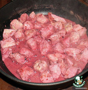 Открываем крышку, видим, что кусочки приобрели цвет, немного убавляем огонь и даем жидкости немного испариться. Это длится тоже минут 5.