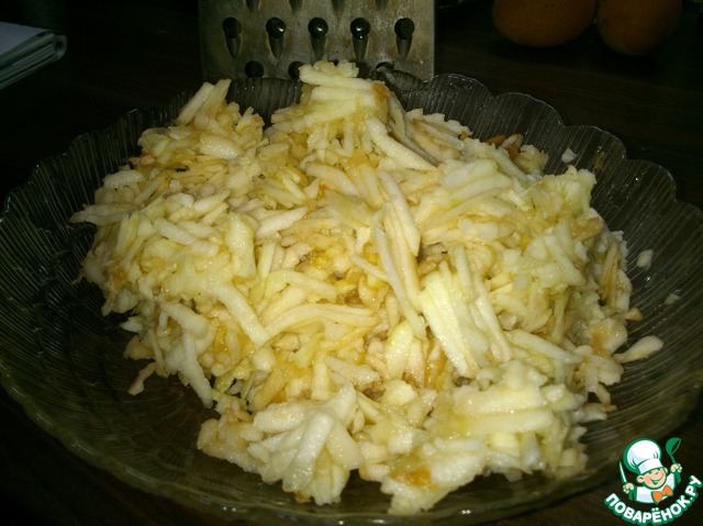 Очистить от семечек и кожуры яблоки и натереть на крупной терке