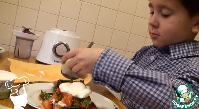 • 2) Приготовьте яйца-пашот. Для этого разбейте их аккуратно прямо в кипящую воду.