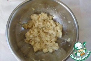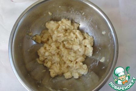 В другой миске разминаем вилкой бананы в кашу с крупными кусочками