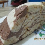 Смесь разделить на три равных части. В одну добавить какао, в другую-печенье, в третью-кофе. -