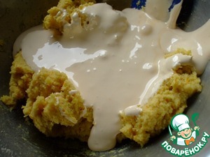 Добавить миндальную муку, смешанную с разрыхрытелем, и ликер. Хорошо перемешать силиконовой лопаткой, но не усердствовать.