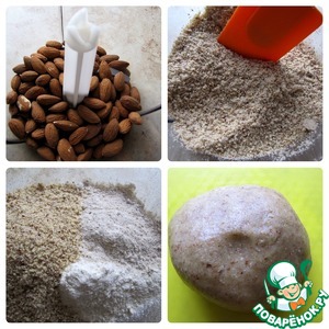 Для приготовления миндальной муки миндаль (можно не чистить от кожуры) измельчить в блендере. Масло перетереть с сахарной пудрой до однородного состояния. Соединить пшеничную и миндальную муку, перемешать с масляно-сахарной смесью. В конце добавить яйцо, хорошенько перемешав, сформировать брусочек теста. Завернуть его в пищевую пленку и положить в холодильную камеру на пару часов до полного охлаждения теста.