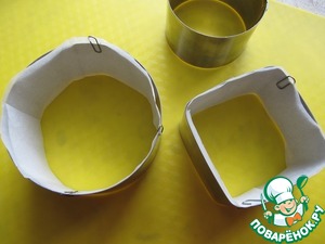 Бока формочек для выпекания я застелила бумагой для выпечки (скрепки потом снять!).