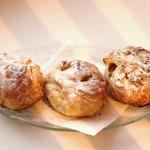 Я правда в углубление не стала сахар класть, а положила изюминку и половинку миндаля, и ещё посыпала кунжутом ( и сахаром с корицей). Очень красиво получилось.