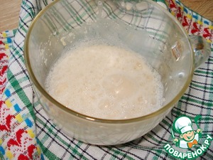 Дрожжи растворите в теплой воде и оставьте минут на 5, пока появится пенная шапка.