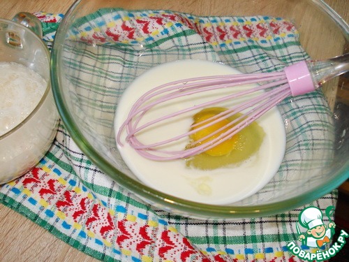 В миске смешайте сахар, соль, теплое молоко и яйцо.