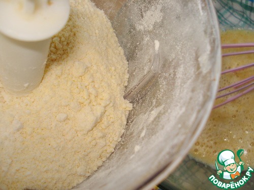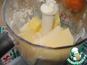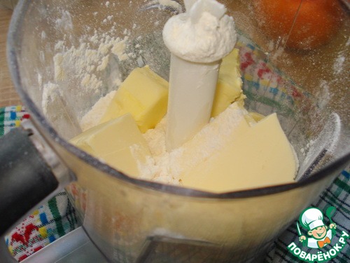 Холодное масло порежьте на куски положите в блендер вместе с мукой. Если у вас нет блендера, вы можете просто порубить ножом.