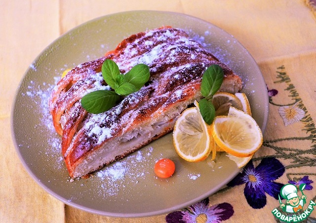 Этот пирог из одноименного теста :"Датское тесто из муки, дрожжей, молока, яиц с большим количеством сливочного масла. Текстура похожа на круассан, но вкус слаще." Вкус потрясающий! Потребуется, правда, некоторое время для его приготовления, но это только из-за того, что тесто должно полежать в холодильнике. Готовить совсем не сложно!