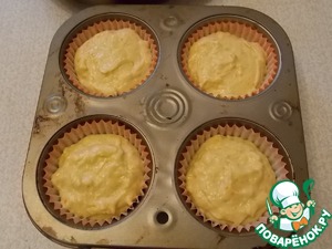 Можно выпекать в силиконовых формочках или, как я, в бумажных. Если хотите, чтобы бумажные формочки держали форму, поставьте их в более плотные формы. Заполняем на 2\3 и выпекаем в духовке при t = 180 примерно 20 - 25 мин.