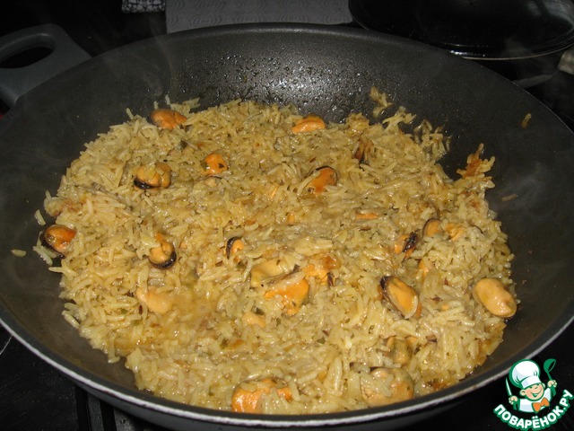 Рецепт «Рассыпчатый жареный рис с мидиями»: