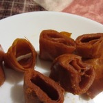 [+5]У меня свежий инжир, перемолотый на мясорубке. На 1кг инжира брала 200г сахара.Сушила на пергаменте для выпечки на балконе.Разрезала на полоски ножницами, что очень удобно.
