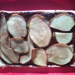 Аккуратно разравниваем, сверху выкладываем грушу, по возможности делаем бортики и смазываем их и груши растопленным сливочным маслом.