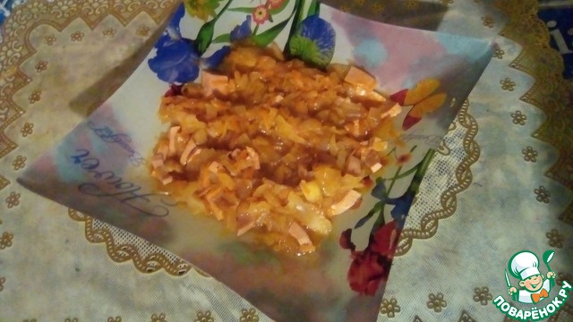 Пока варится капуста, на растительном масле обжарить до золотистого цвета лук, нарезанный кубиками.