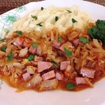 Тушеная капуста с колбасой и томатами