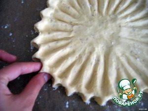 Пальцы рук обмакнуть в муку и сделать ажурный край