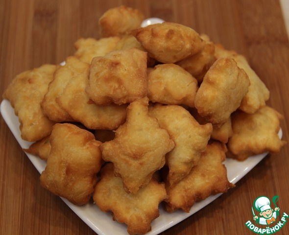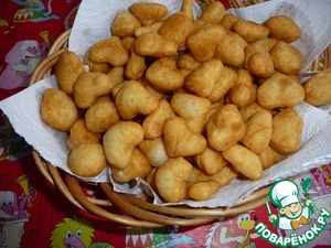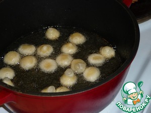 Второе тесто-как у Вас ,но готовить более жидкое,потом перемешать с заварным-будет как густая сметана,или чуть круче... Поместить в пакет и чайной ложкой в кипящее масло. Плюшки -УВЕЛИЧИВАЮТСЯ в размере в 3 раза........