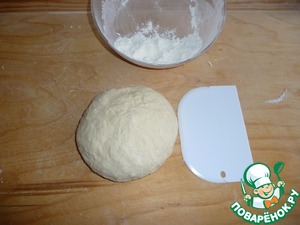 Тесто будет липнуть к рукам, тогда нужно присыпать его немного мукой. Сильно это тесто нельзя вымешивать, иначе оно будет как резина.
