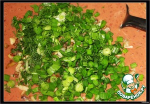 • Зелень мелко нарезать и соединить с печеночной смесью.