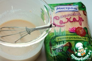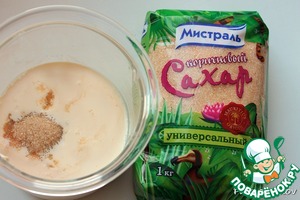 Соединить сливки, яичный желток и коричневый сахар. Немного взбить венчиком.